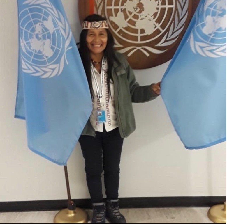 Gloria Ushigua (she/her) is the co-founder and president of the Sápara women’s organisation Ashiñwaka, which has been defending the Sápara people’s ancestral land and environmental rights in Ecuador since their land rights were granted in 1992, due in large part to the activism of women from this organisation. The Sápara territory retains its original biodiversity in the Amazon rainforest, including oil and mineral deposits, ancient growth trees, and other “resources” desired by private and State-owned companies. Protecting the integrity of the territory Sápara call home is an ongoing battle. When Sápara territorial rights were threatened by a government plan to open oil blocks in Ecuador’s Southern Amazon, Gloria led successful efforts to keep the oil in the ground. In addition to land defense, Ashiñwaka is a safe haven for Sapara women experiencing domestic violence and sexual abuse, and has enabled women to participate in international political spaces such as UNPFII and the COP climate change negotiations. Ashiñwaka were recently awarded a prize by the Lush Foundation. Read more about this here.