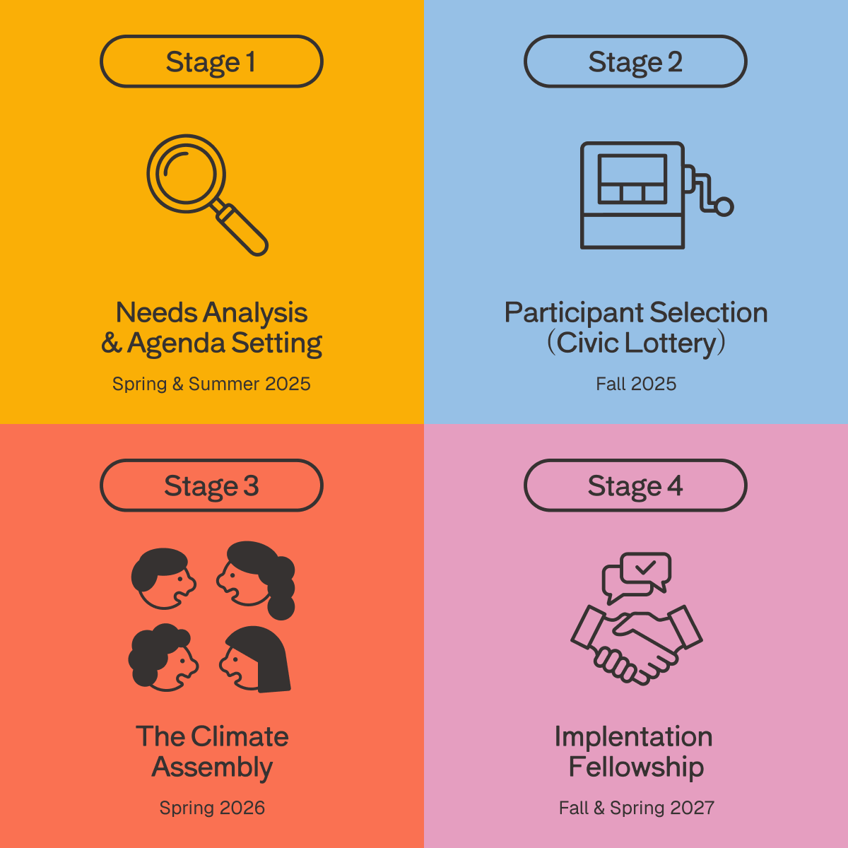 The Assembly will bring together CUNY students selected in the civic lottery to learn with experts, deliberate on challenging trade-offs, and generate solutions on a specific climate policy issue.